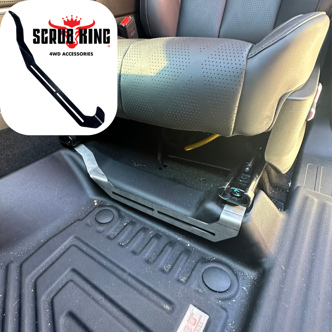 Securely mount a 1kg fire extinguisher on the passenger seat rails, without drilling any new holes!